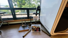 The Framery O soundproof phone pod for one allows for private calls, participation in online classes and meetings, and audio recording.