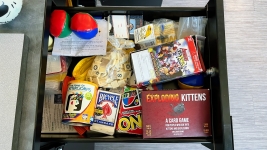 Bring your friends anytime and play one (or more) of the many current and classic board games we collect. We also have board games you can borrow for game night at home.