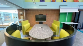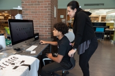 Work in our inviting environment, including comfortable workspaces for both solo and group projects, state-of-the-art computers, a wideformat printer, a SmartBoard, a laminator, and a phone booth for private conversations or video conferencing.
