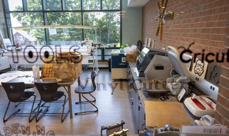 The Collaboratory is our 2,400-square-foot makerspace, digital media lab, and coworking space It contains a wide variety of state-of-the-art technology as well as traditional handcrafting tools. The Collaboratory is divided into two areas. The main space contains computers, work tables, a horseshoe booth with a projection and collaboration system, and a popup photography/video studio. The smaller room, which we’ve named the Vault, houses the equipment that requires staff supervision. We provide individual instruction about the more complex equipment as well as small group maker activities.