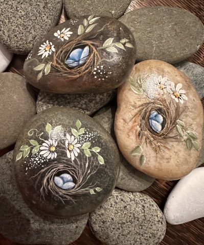 Paint a cheery winter-themed penguin family on a repurposed slate. This is an intermediate level painting project.