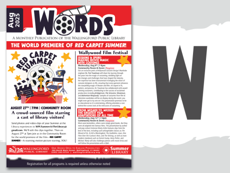 Words is the Wallingford Public Library’s monthly newsletter containing library news, information, and upcoming events. You can pick up a print copy of the newsletter at the library or become a member of the Wallingford Public Library Association to have the newsletter emailed to you each month. If you are viewing the newsletter online you can click the links throughout to register for various programs and events.
